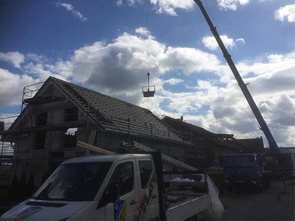 Sofortiges Eindecken über fahrbare mitgelieferte Dachböcke möglich.